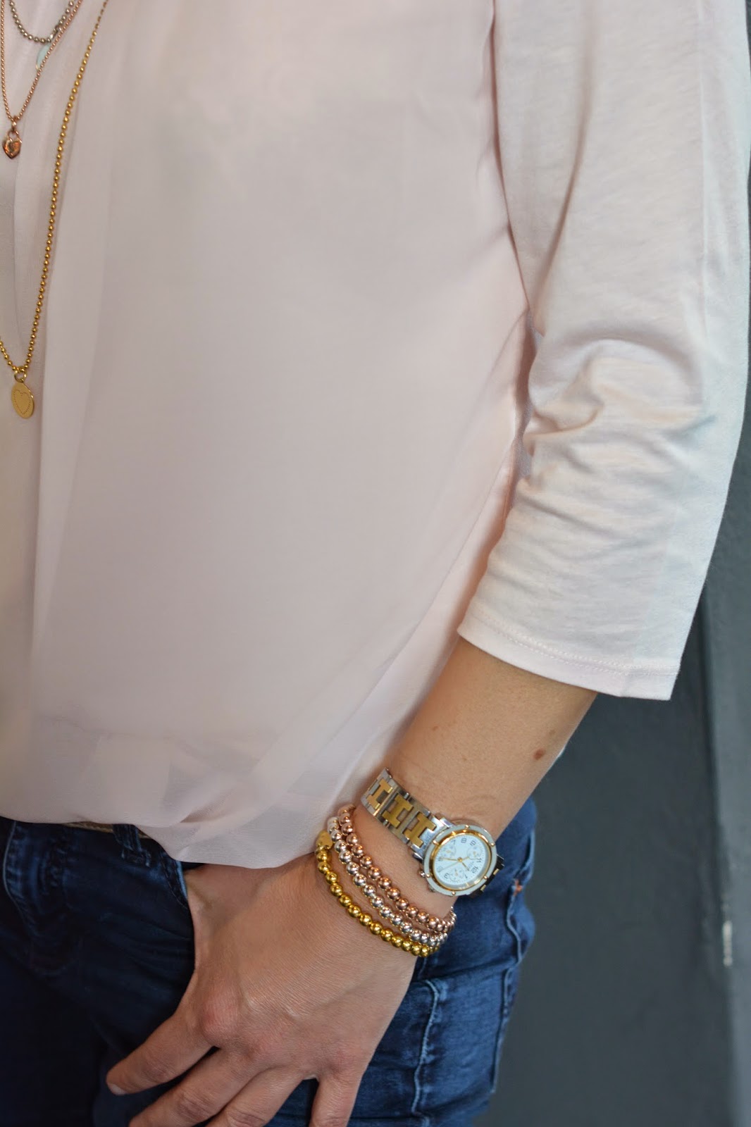 Gerne trage ich die Kombination silber & gold & rose …… als Ketten & als Armbänder.