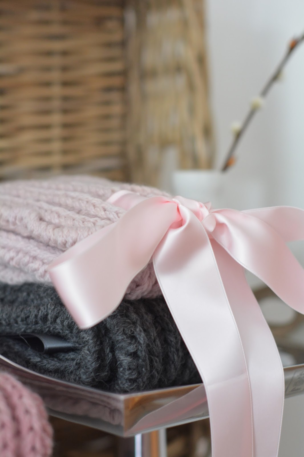 Nun noch Satinbänder an den Enden annähen und fertig ist der zauberhafte Schal, mit dem ihr immer wie ein hübsch verpacktes Geschenk ausschaut!