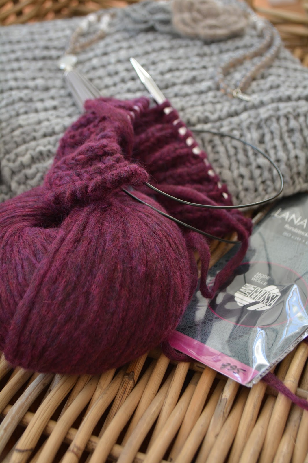 Zur Zeit habe ich einen Schal in Arbeit, der einfach nur im Patentmuster gestrickt wird und durch die Trendfarbe BORDEAUX wirkt.