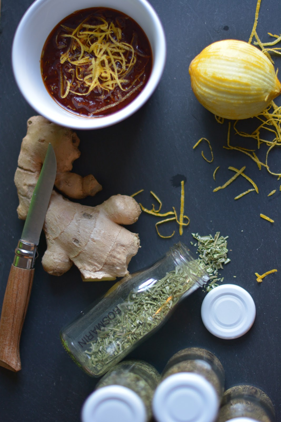 Rosmarin, Knoblauch und ein paar Chiliflocken.