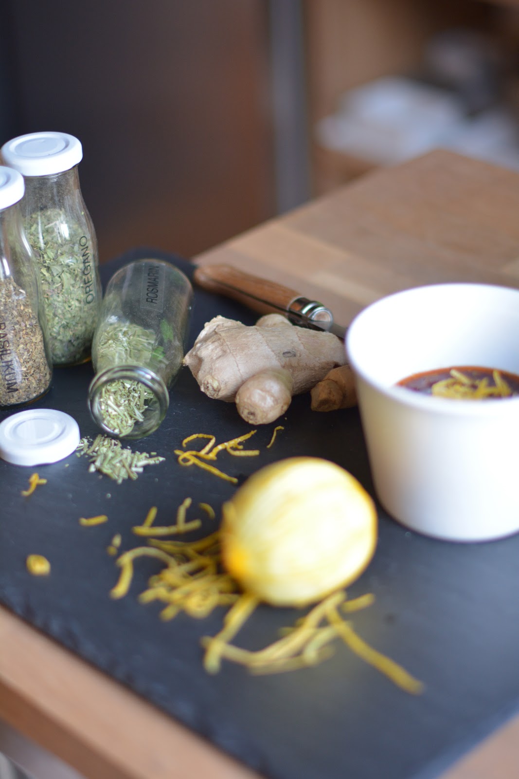 In der Zwischenzeit würfelt ihr den Ingwer ( ruhig ein dickes Stück….