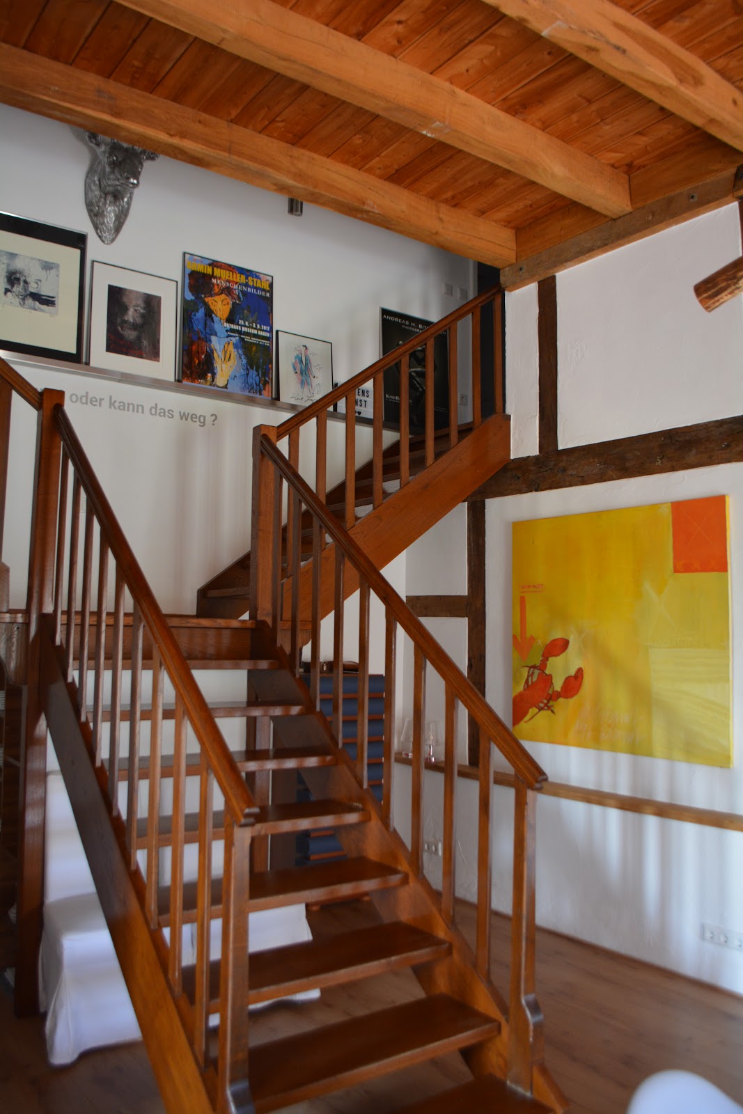 Neben SELBSTGEMACHTEM finden dort Ausstellungsplakate und Witziges im Wechsel mit etwas anspruchsvollerer Kunst ihren Platz – wobei das ja immer im Sinne des Betrachters ist.