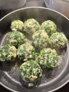 30 Minuten ruhen lassen und mit feuchten Händen 9 Knödel formen.